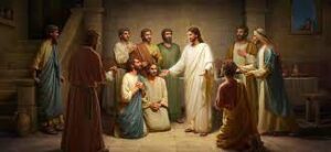 وإذ “بيسوع نفسه“وهنا يود الانجيلي أن يقول أن يسوع شخصياً ظهر، وليس طيفاً أو خيالاً اعترى التلميذين يدخل على الخط، يبادر الى لقاء التلميذين، يسير معهما ويسألهما عمّا يتحدثان، فيعتبرانه ” غريباً عن أورشليم” ، عن هذه المدينة التي من المفترض حسب النبوءات، أن يتمّ فيها الخلاص  عندها استفاضا بالكلام عن قدرة يسوع الناصري وأعماله، ودوره النبوي، واعتباره فادياً لاسرائيل، ولكن هذا تبدّد عندما أُسلم الى الموت، رغم بعض الاصداء المُدهشة التي تردّد : أنه حيّ.