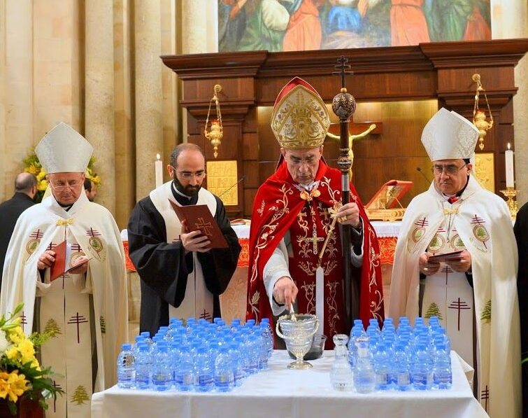 الكاهن: يا خالق المياه وصانع كلّ شيء، بارك هذه المياه بقوّة الروح القدس،