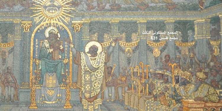 ثالث المجامع المسكونية، عُقِد في أفسس بدعوة من امبراطور الشرق ثيودوسيوس الثاني وامبراطور الغرب فالنتينيانوس الثالث بهدف حل المشكلة التي قامت بسبب تعليم نسطوريوس بطريرك القسطنطينية، الذي رفض لقب “أم الله”، وذلك بسبب فكرته الكريستولوجية التي تركّز على كمال طبيعة المسيح البشرية لدرجة الفصل بينها وبين الطبيعة الإلهية؛ لهذا كان يدعو مريم “أم المسيح”، وكان يعتبرها أم يسوع الإنسان وليست أم يسوع الإله. هذا الاعتقاد لم يكن موافقاً لتعليم الكنيسة القائل بوحدة شخص يسوع الإله ـ الإنسان .