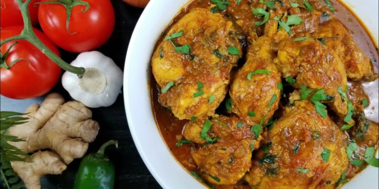 3. نضيف الدجاج والتوابل ونترك الدجاج على النار إلى أن يتحمر قليلاً.