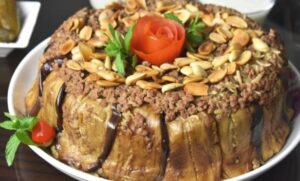 9. يوضع الحراق اصبعه في صحن التقديم ويزين بباقي البصل المحمر وبالخبز والكزبرة الخضراء المفرومة.