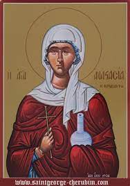 وما عتم ان منَّ الله عليها بالفرج بموت زوجها الظالم. فتمتعت انسطاسيا بحريتها وأخذت تواصل أعمالها الخيرية. ولما نُقل مرشدها القديس إلى مدينة اكويليا، لحقت به وما زالت تقوم بخدمته إلى أن نال إكليل الشهادة أمامها، فتاقت نفسها إلى اللحاق به في سفك دمها لأجل المسيح، فكان لها ما تمنَّت، إذ عرفت بأنها مسيحية فقبض عليها فلوروس الوالي وأودعها السجن ثم أخذ يتملقها لتكفر بالمسيح فرفضت بكل جرأة.