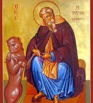 نسك مدة في ليكيا وطنه ثم مضى إلى براري فلسطين فسكن قفراً مجاوراً للأردن، وانعكف على ممارسة الفضائل.