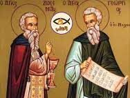 كان هذان الشهيدان من مدينة تسالونيك، خادمين في كنيستها بكل ورع وعبادة. ولما أثار مكسيميانوس الاضطهاد، وشي بهما إلى والي المدينة. فسألهما عن معتقدهما، فجاهرا بأنهما مسيحيان. فأخذ يتملقهما ويتهددهما ليقلعا عن عنادهما ويذبحا للأوثان، فرفضا بكل جرأة. فأمر بطرحهما في السجن.