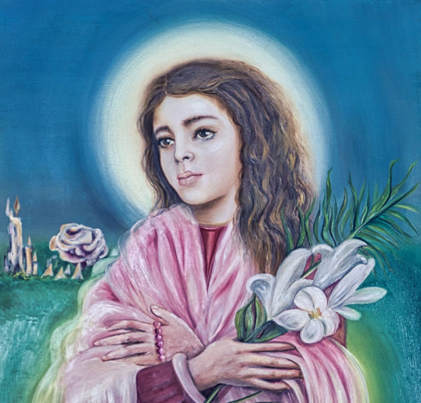 فالقدّيسة تعيش في هذا المنظور: تُصلّي وتتألّم وتبحث عن ”الفقر المقدّس“ كَـ ”تخلية الذات وفقدنها“، وفقدان الذات كي تكون فعلاً كالمسيح، الذي بذل كلّ ذاته