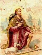 ولد في أواخر القرن الثالث عشر في مدينة مونبلييه في فرنسا من أبوين شريفين تقيين. وعند ولادته ظهر على صدره صليب أحمر، رمزاً لجهاده في الحياة حتى الدم. وكان متفانياً بوجه خاص في محبة القريب. ولما توفي والداه، وهو ابن عشرين سنة، وزع أمواله على الفقراء تاركاً لعمه ما يملكه من أراض واسعة وقرى عديدة. ثم تنكر بزي الفقراء والمساكين وهجر وطنه قاصداً إلى مدينة روما العظمى. وما دخل إيطاليا حتى رأى مرض الطاعون يفتك في أكثر مدنها. فشرع يهتم في دفن الموتى ويخدم المرضى ويشفيهم بإشارة الصليب المقدس. غير أنه أصيب هو نفسه بهذا المرض ولازمه وجع مؤلم في جنبه فأوى إلى غاب خارج المدينة، وهناك قاسى آلاماً مبرحة.
