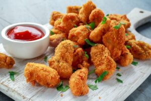 - يقطع الدجاج إلى قطع متوسطة الحجم.