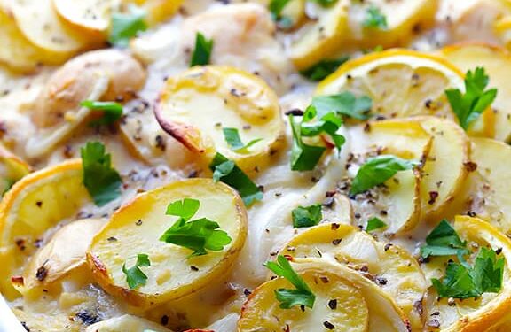 - يوزع البطاط على وجه الطبق ويدخل الفرن حوالى سبع دقائق ويقدم مع الرز بالشعيرية وبالعااافية.