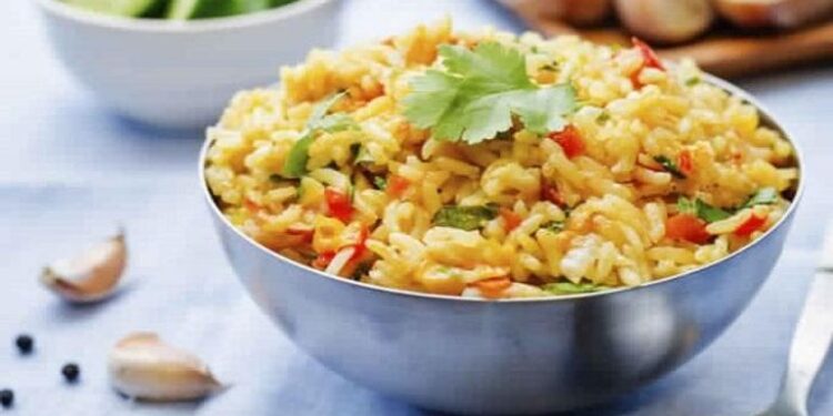 - نضع الأرز فوق الخلطة ويترك على الحديدة الفاصلة عن النار لمدة ربع ساعة ويقدم مع اللبن (الزبادي) وبالهناء والعافية.