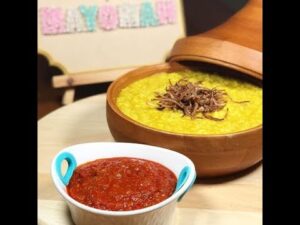 - توضع الصينية في الفرن على حرارة 220 مئوية لمدة 2/1 3 ساعات ويضاف ماء للصينية كلما جفت ماؤها.