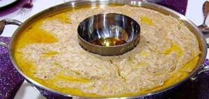 4. تغطى الصينية أو البايركس بالسلفان وتوضع في الفرن في الطبقة الوسطى من الفرن لمدة ساعة ثم تقدم.