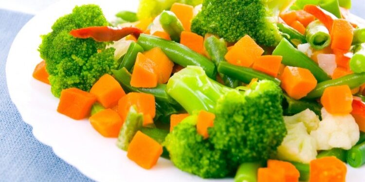 - تذوب الزبدة في المقلاة ثم يضاف لها الخضار ومكعب مرق الدجاج من غير إضافة الماء وتقلب معا على النار وترش بالفلفل الأسود وتغطى وتترك على نار هادئة لبضع دقائق فقط (سبعة الى عشر دقائق) وتحرك بهز القدر بين الحين والآخر لتستوي على البخار ثم تقدم.