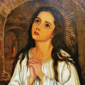 أيّتها العذراء النقيّة والشهيدة القدّيسة، تنازلي وألقي نظرة عطف من السماء على خادمك الأمين، عزّيني في عذابي، ساعديني في الخطر، وهُبّي لنجدتي ساعة موتي.