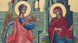 اضطربَتْ مريمُ، لدى ذا الكلام، وتساءَلَت في نفسها ما عسى أن يكون هذا السلام. فقال لها الملاك : لا تخافي، يا مريم، لقد نِلتِ حظوةً عندَ الله.