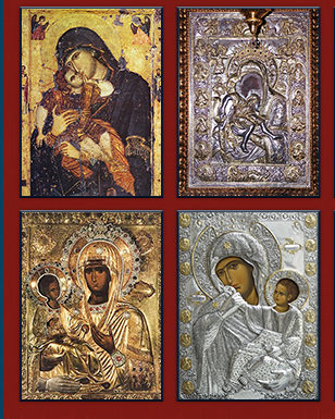 أيقونات السيدة العذراء عديدة جداً، ولكن تجدر الإشارة هنا إلى أن السيدة العذراء بحسب التقليد الأرثوذكسي، لاتُرسم وحدها أبداً، بل هي دائماً مع السيد المسيح. ونحن نكرمها لأنها “والدة الإله” وهمّها أن ترشدنا دائماً إلى ابنها.