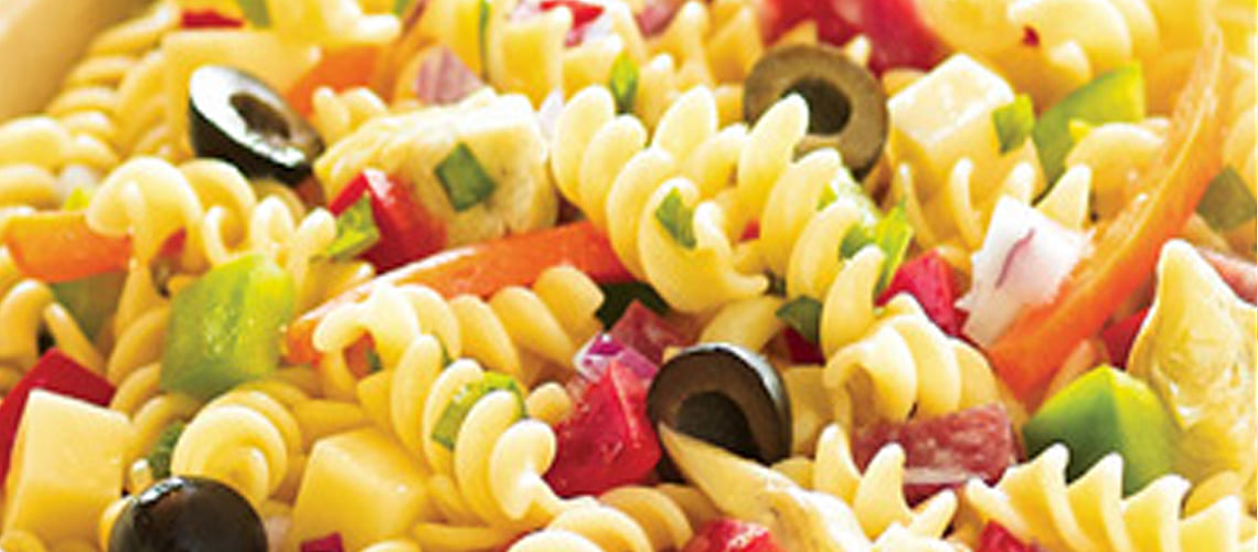 - تخلط جميع الخضار مع المعكرونة وشرائح الزيتون ثم تقلب قليلا مع الصلصة وتقدم.