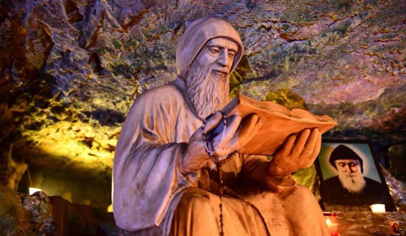 المحتفل: بشفاعة القدّيس شربل، يبارككم الثالوث الأقدس الآب والابن والرّوح القدس.