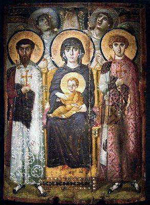 أيقونة العذراء (والدة الإله) والطفل يسوع مع القديسين ثيودوروس وجرجيوس– القرن السادس