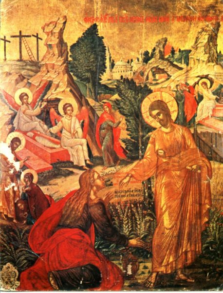الخلفية الذهبية في الأيقونة تمثّل الجو الإلهي الذي يحيط بالله وبقديسيه. فإن تنظر من خلال نافذة الأيقونة بأعين الإيمان هذا يعني أنك تنظر إلى المجالات السماوية. ولأجل الأمانة لهذه التقوى التضرعية الجلية تأمّل لاهوتيو الكنيسة الأولى بسرّ تجسد الله ففتّشوا في العهد القديم عن طرق للتعبير عن تصوّر مسبق للثالوث الأقدس، فاستندوا على مقطع من كتاب التكوين في الفصل الثامن عشر الذي يتحدّث عن زيارة ودّية قام بها ثلاثة ملائكة إلى إبراهيم في منطقة ممرا. تشير هذه الزيارة، في مفهوم الكنيسة، إلى ظهور الثالوث الأقدس. وتتحدّث النصوص الليتورجية الأرثوذكسية فتقول: “مبارك إبراهيم الذي رأى وتقبّل الواحد ذا الطبيعة الإلهية الثالوثية”.