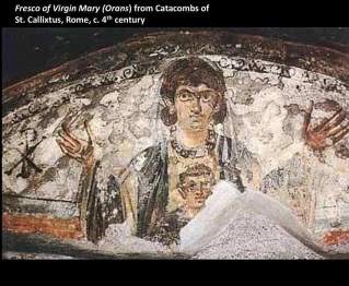 كما هذا الشكل مِن العذراء المتضرّعة وُجِدَ أيضًا في أيقونة الصعود كما تظهر مثلًا قارورة مونزا Monza مِن القرن السادس ميلادي وإنجيل رابولا الذي يعود ل٥٨٦م.