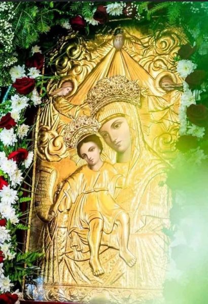طبقاً للتقليد، فإن أيقونة العذراء سيدة البحور تحمي هؤلاء المسافرين بحراً جنباً إلى جنب مع أيقونة القديس نيكولاوس، و السبب أن هذه الأيقونة في أحد الليالي العاصفة شوهدت قادمة من البحر في إتجاه شاطئ جزيرة أندروس اليونانية مصحوبة بضوء غريب، بدأ سكان الجزيرة تتبع الضوء، حتى أرشدهم إلى كهف صغير و في داخل الكهف شاهدوا أيقونة العذراء فقاموا بنقلها إلى كنيسة القديس أثناسيوس.