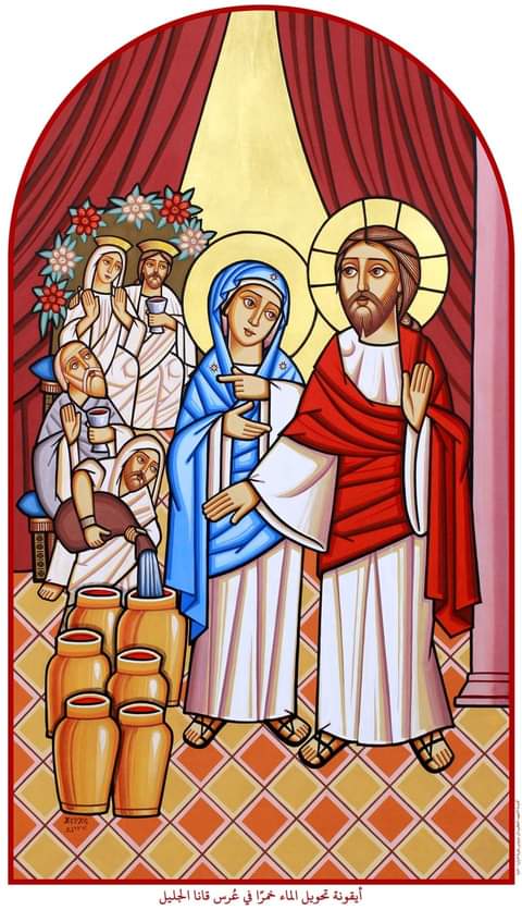 وهي أيقونة قبطية حديثة تصور أول أعجوبة قام بها السيد المسيح وهي تحويل الماء في الأجران لخمر. يظهر في الأيقونة إلى جانب السيد المسيح أمه مريم العذراء وعروسا قانا واقفان في الخلف.