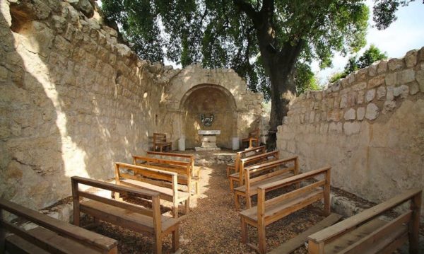 ومن بين الحِجارة التي لم تَدخُل في البناء، واحدٌ يبدو كأنه مَذبَح وثنيّ، وحَجَر آخر عليه كتابة يونانية بقي منها، بعد أن أُصيب هذا الحَجَر بالقَضم نَتيجةَ التقصيب، سطر كامل تعلوه أحرف ثلاثة.