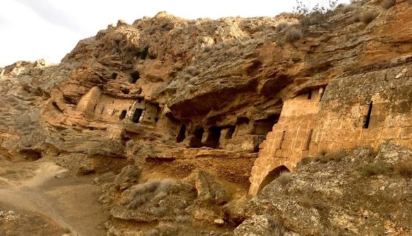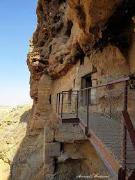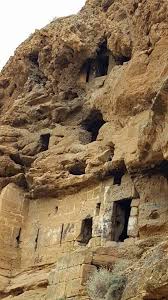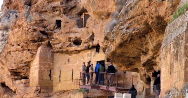 أما المغاور، وهي عدة طبقات ترتفع عن مستوى النهر ستين مترا، فتتصل في ما بينها بأدراج وسلالم وفي وسطها حفر البئر المذكور عميقا.