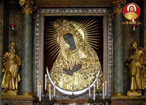 شعار البطريركية المارونية التي اتخذت من مارون أبًا وشفيعًا. بشكل عام، اعتادت الكنيسة أن تقيم تذكار قديسيها يوم وفاتهم، أو وفق المعنى الكنسي، يوم ولادتهم في السماء، إلا إذا تضاربت ذكرى وفاة هؤلاء مع أعياد كنسيّة هامة، فتقيم ذكراهم في يوم تلقيهم رسامتهم الكهنوتيّة أو الرهبانية، لذلك فإن العيد الأول للقديس مارون، وهو في 14 فبراير، والذي لا يزال معتمدًا حتى اليوم في الكنيسة الرومانية الكاثوليكية وسائر الكنائس التي تبجله، قد يكون يوم وفاته أو يوم رسامته الكهنوتيّة، ومن المحتمل أن يكون الموارنة حتى القرن السابع قد اتخذوا من 14 فبراير عيدً وذكرى للقديس مارون.