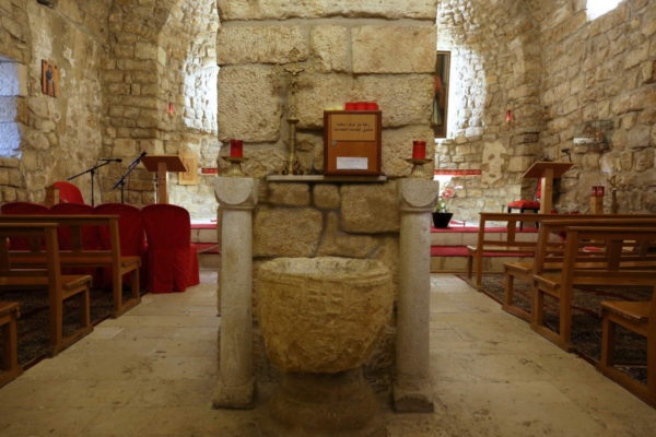 الكنيسة عِبارة عن سوقَين كلّ منهُما مؤلَّف من عقدَين مصالَبين، تفصل بينهما عُضادة كبيرة، وكل سوقٍ يحتوي على حَنيَّة شرقية مُكوَّرة، وتكويرتها مَفصولة عن قاعِدَتِها بإفريزٍ حَجريّ، وأمام كلّ من الحَنَّيتين مَذبَح من حَجر هو، على وجه الدقة، لوح صَخريّ يَرتكِز على قاعدة عمودٍ أثريّ من المُرجَّح أنه يعود الى العُصور البيزنطية. وفي هذه الكنيسة جُرنُ مَعمودية هو كِناية عن حَجرٍ مُجوَّف ليَستقبِل ماء العِماد، أمّا عُمرَه فيرقى الى عُهودٍ مُتطاولة في القِدَم.