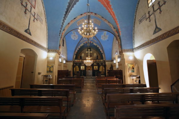 بالعودة إلى كنيسة مار يوحنّا، فهي معقودة وذات سوق واحد، مَدخلها مُنخفض، بِحيث لا يمكن الدّخول اليها إلّا انحناءً.  في سَقفِها جِرارٌ من الفخّار لامتِصاص الصَّدى والضَجيج، تُزيّنها أيقوناتٌ لمار يوحنّا الصابغ، ويوجد فيها مدفنٌ يضمُّ رفات الشمّاس عبدالله الزاخر، ورفاة بطاركة ومطارنة ورؤساء عامّين.