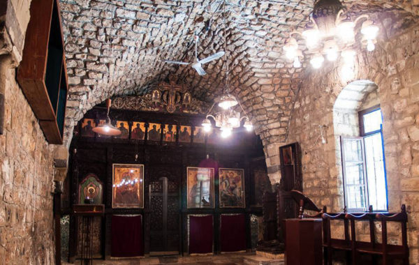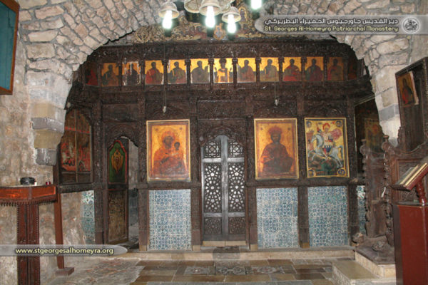 في الكنيسة القديمة صنع رهبان الدير أيقونسطاس خشبي غاية الدقة والإتقان محفور حفرا فنيا والجميل فيه عدم غزو السوس له عبر الزمن. فيه مجموعة رائعة من الأيقونات من أول القرن الثامن عشر ورثت الفن الرومي وأعطته سمات محلية لذلك اصطلح على تسميتها ( الأيقونة السورية).