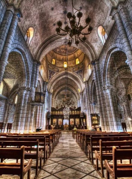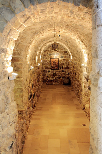 ثمة في الساحة الداخلية أدراج تؤدي إلى الكنيسة القديمة في الطابق السفلي.