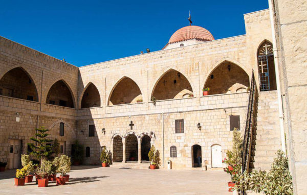 يتألف القسم شمال الساحة الداخلية من رواق مقنطر يؤدي إلى الكنيسة الجديدة التي بنيت بين عامين ١٨٥٧_ ١٨٦٣ والتي تتكون واجهتها الخارجية البسيطة من الحجر الكلسي المغري اللون وتقتصر زخرفتها على بعض الكوات المستديرة. تعلو الكنيسة قبة نصف دائرية وتغطي السطح باستثناء القبة حجارة قرميدية حمراء تضيف لمسة من الابتهاج إلى بساطة البناء الخارجي. الكنيسة تشبه كنائس العصور الوسطى الفرنسية من حيث هندستها الغوطية المحدثة التي كانت رائجة جدا في القرن التاسع عشر. يتبع مخطط الكنيسة شكل الكاتدرائية مع قبة نصف دائرية. وثمة صفان من الأعمدة المفصصة التي تنتهي بتيجان تسند الأقواس المسننة تقسم الكنيسة إلى ثلاثة أجنحة كما ثمة أعمدة ذات تيجان جعلت في جدران الجناحين الجانبيين كدعائم لها وهي تشبه من حيث الشكل أفاريز الكنيسة القديمة.