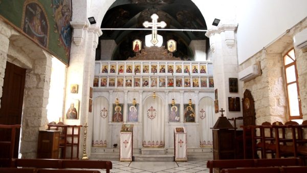 إيقونات القرن الثامن عشر تتقدّمها ثلاث، رسمها البطريرك سلفستروس، وهي موجودة اليوم في كنيسة القدّيس يوحنّا المعمدان. الأولى، تمثّل المسيح مباركًا بيده اليمنى، وحاملاً بيده اليسرى الإنجيل فوق حضنه. القدّيس يوحنّا المعمدان يقف إلى اليسار، وهو مائل باتجاه المسيح مباركًا بيمينه، بينما في يده اليسرى كتاب مفتوح، كُتب عليه باللغة العربيّة “هذا هو حمل الله الرافع خطايا العالم”. الإيقونة الثانية تمثّل العذراء والطفل على ذراعها اليسرى مائلاً نحو والدته وعيناه تتّجهان إلى مُشاهدَ الإيقونة. إلى يمين العذراء والمسيح تقف القدّيسة تقلا حاملة صليبًا معدنيًّا بيدها اليمنى، وراسمة إشارة الصليب باليد اليسرى. أمّا الإيقونة الثالثة فتمثّل البشارة: الملاك جبرائيل يقدّم وردة إلى مريم التي تمدّ يدها لتتناولها.