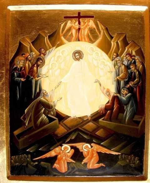 ٦٣٧- عندما مات المسيح، انحدَر، بنفسه المُتَّحِدة بالشخص الإلهيّ، إلى مقرّ الأموات. وفتح للأبرار الذين سبقوا مجيئه، أبواب السماء