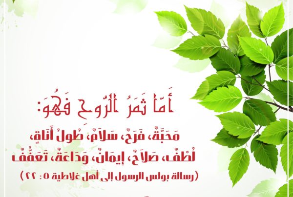 “وأما ثمر الروح فهو محبة، فرح، سلام، طول أناة، لطف، صلاح، إيمان، وداعة، تعفف” (غل 5: 22، 23).
