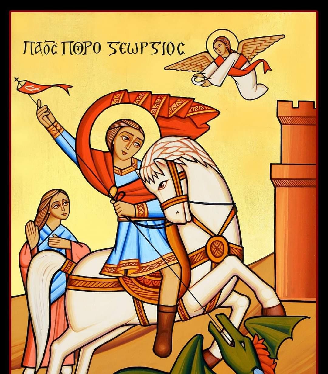 أيّها القدّيس جاورجيوس، لمّا تسلَّحت بدرع الإيمان، وترس النّعمة وحربة الصّليب، أمسيت غير منهزم لدى الأضداد كبطل إلهيّ. وبما أنّك هزمت مواكب الأبالسة، فأنت ترتع مع الملائكة في الأخدار السّماويّة. حافظًا ومقدّسًا المؤمنين ومخلّصًا الذين يدعونك.