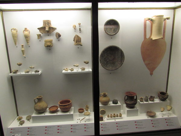 يتضمن العرض عددا من الاكتشافات مثل المصابيح الزيتية وأنابيب التدخين والفخار والتماثيل والأواني والحلي المسيحية. تشمل الآثار الأخرى المحفوظة في الموقع أجزاء من مذابح الكنائس القديمة والحنية والفسيفساء والنقوش الحجرية وشواهد القبور والأعمدة ، وبعضها ينتمي إلى كاردو ماكسيموس في المدينة القديمة.