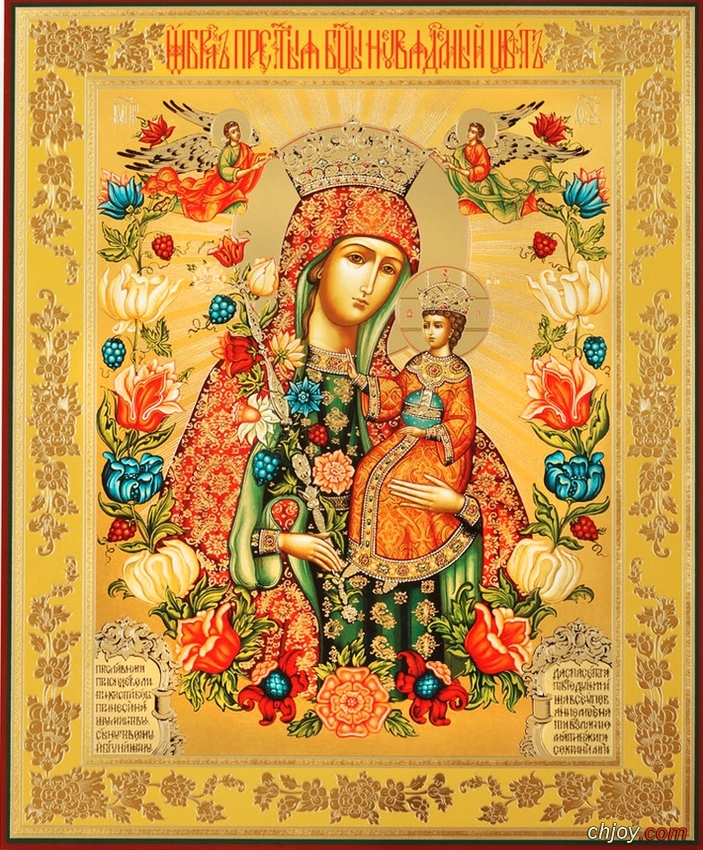 الجدير بالذكر أن في بعض الأيقونات، بالإضافة إلى الزنابق، يتم أيضًا رسم الورود أو الزهور الأخرى.