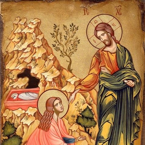 ( يا مريم) عبارة صغيرة لكنّها أرسلت إلى قلب مريم شعاعاً قياميّاً جعلها تعاين المسيح القائم من الموت. في حين أنّها لم تعرفه من قبل لأنّها كانت تبكي. ” ولما قالت هذا التفتت إلى الوراء، فنظرت يسوع واقفاً، ولم تعلم أنّه يسوع.” ( 14:20). ناداها الربّ باسمها، ما يشير إلى معرفة السّيّد لشخصها كما معرفته لشخص كلّ واحد منّا. وما يؤكّد على أنّ قلب مريم أبصر القيامة كفعل حقيقيّ، وعاينت الرّبّ الشّخص. لذا اقتربت لتلمسه، ما ينفي الوهم والشّكّ والقلق لتتجلّى الحقيقة كاملة.