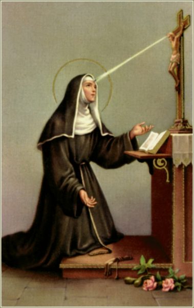 وعليكِ نعتمد أيتها القديسة ريتا وبما أنه لك قدرة سامية لدى قلب ربنا يسوع استمدي لنا النعمة التي من أجلها نتوسل إليك بقلب منسحق ومتواضع.