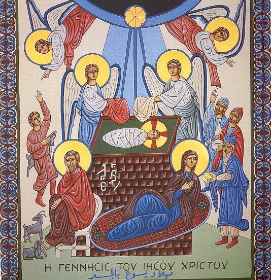 بميلادِكَ أقمتَ السَّلامَ بين السَّماءِ والأرض، ونَقَضْتَ السِّياجَ بين العُلويِّين والسُّفليِّين. بِميلادِكَ أنقذتَنا فكان الرَّجاءُ الصَّالِحُ لبَني البَشر. بِميلادِكَ أشرَقَ النـُّورُ على العالمِ وانقشَعَ الظلام. بِميلادِكَ تقارَبَ البُعَداءُ والأقرباءُ واشتَرَكوا في عيدِكَ معا. أليومَ أعلن الملائِكة ُ الرُّعاةَ: لقدْ وُلِدَ لكُمْ مُخلّصٌ وهوَ الرَّبُّ المَسيحُ في مدينةِ داوُد.