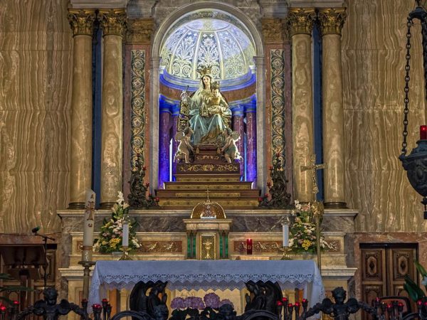 إن لتمثال العذراء المجيدة الموضوع فوق الهيكل العلوي أهمية خاصة به. فقد تم نحت رأس التمثال عام 1820 من قبل “كاراقينا من جنوا”.