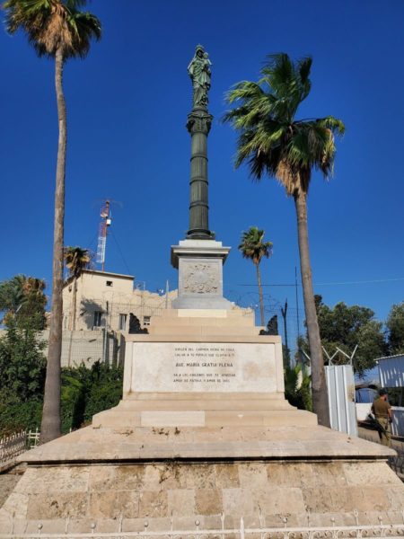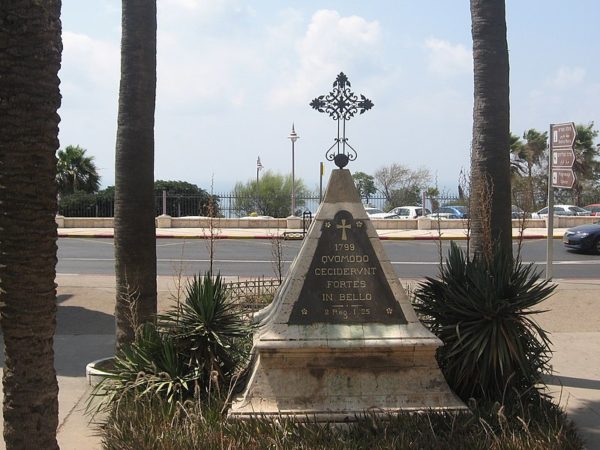 مقابل مدخل الكنيسة مباشرة هنالك نصب تذكاري هرمي الشكل لذكرى الجنود الفرنسيين الذين ماتوا خلال انسحاب جيش نابليون في عام 1799 من عكا، عندما لم يستطع احتلالها، فجرح عدد من الجنود وقتل عدد آخر، لكن نابليون تركهم في أرض المعركة وفر هاربا، فجمع الأهالي جثث القتلى ودفنوهم أمام دير ستيلا مارس وأقاموا النصب التذكاري فوق ضريحهم..