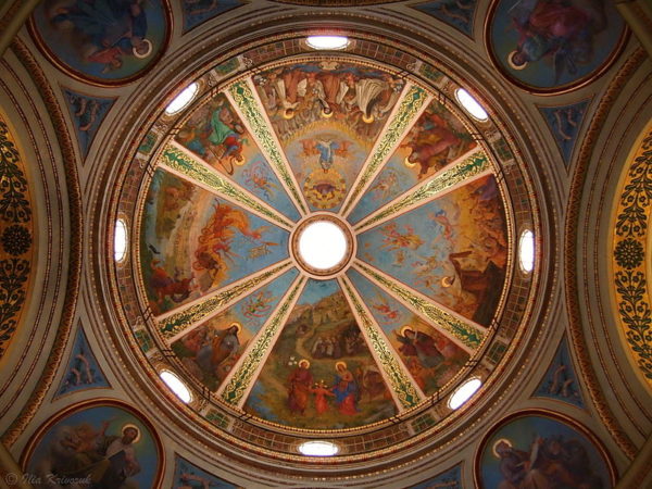 اما الرسومات الفنية التي تزين قبة الكنيسة فقد نُفذت عــلى ايدي الأخ الراهب لويس يـوجي