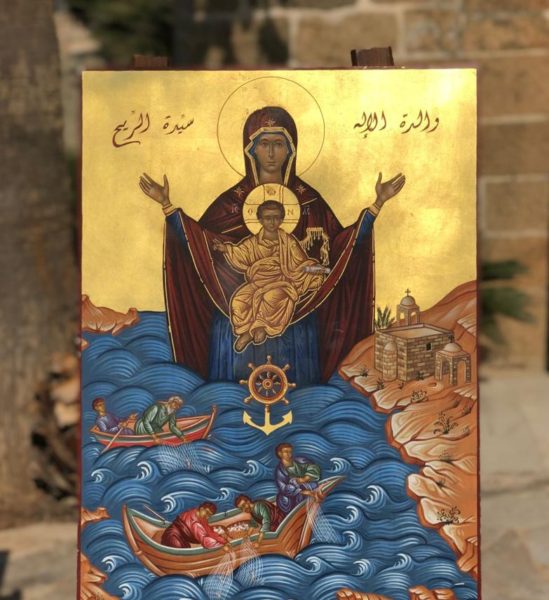 أيقونات القدّيس يوحنّا المعمدان، رئيسي الملائكة ميخائيل وجبرائيل والابتهال كتبت بيد اسحق نقولا الأورشليمي، ١٨٦٣ |