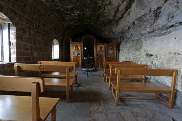 كنيسة الدير تتألف من صحن واحد، والأيقونسطاس من الرخام الابيض، وهي من الانماط الرومية البيزنطية والروسية الأرثوذكسية، ترجع إلى أوائل القرن العشرين.