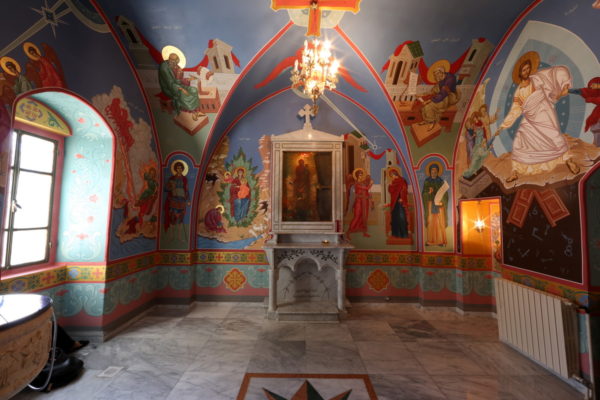 اما الأيقونات الملكية فرسمها نيكولا فافوبولو اليوناني، أما أيقونات الرسل فكتبتها الراهبة بلاجيا تبشراني.