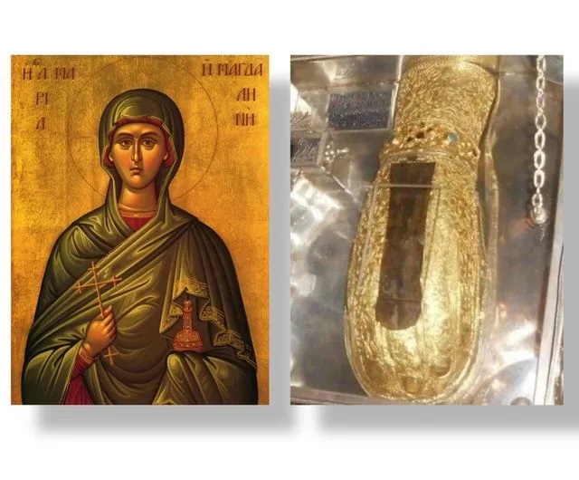 يد مريم المجدلية منذ ألفي عام، لا تزال على حرارتها كأنها تنبض بالحياة، وهي يدها اليسرى التي حملت الطيب لتدهن به يسوع، وهي محفوظة اليوم في دير سيمونوس بتراس في الجبل المقدس، في أثوس اليونان، وتفيض طيباً بين الحين والآخر، وتجري بواسطتها عجائب كثيرة، وتعيد لها الكنيسة في 22 يوليو.